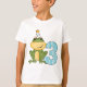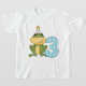 Se você ama sapos, vai adorar nossas camisetas aniversário de 3 anos de Sapo do Partido, roupas de cama, sacos de tote, botões de aniversário e mais o terceiro aniversário especial! Possui um sapo verde vestindo um chapéu de partido polca branco pontilhado e um grande número azul 3!