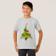 Camisas de Natal, canecas, cartões, autocolantes, sacos de tote, ímanes e outras roupas de Natal e presentes com uma árvore bonito decorada com luzes.