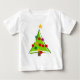 Camisas de Natal, canecas, cartões, autocolantes, sacos de tote, ímanes e outras roupas de Natal e presentes com uma árvore bonito decorada com luzes.