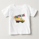 Os rapazes e raparigas adoram caminhões grandes, e os nossos miúdos Dump Truck, as crianças, as t-shirts de bebês e os trajes corporais adoram-se! O texto de cores primárias que diz "DUMPTRUCK" é apresentado, assim como um grande caminhão de lixo amarelo!
