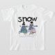 Dois amigos bonecos de neve e um casal de pinguins pequenos brincam juntos na neve num dia de inverno em camisetas, capuzes, canecas, cartas, ímãs, sacos de tote e outros equipamentos para boneca de neve.