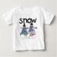 Dois amigos bonecos de neve e um casal de pinguins pequenos brincam juntos na neve num dia de inverno em camisetas, capuzes, canecas, cartas, ímãs, sacos de tote e outros equipamentos para boneca de neve.