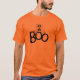 Um esqueleto e um texto que diz "BOO" nas T-shirts do Skeleton Boo Halloween, bolsas de truques ou de tratamento, cartas, autocolantes, canecas, ímanes e outros talheres do Halloween, roupa e presentes.