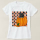 Camisetas coloridas do Halloween, canecas, cartões, adesivos, bolsas de truque ou de tratamento, ímanes e outras roupas e presentes do Halloween com um gato preto giro na abóbora e design de pontos cor laranja e preto!