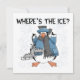 Um pinguim vestido com um casaco azul, chapéu, e um cachecol carregar seus skates de gelo e pergunta "Onde está o gelo?" Este design de patinador de pinguim bonitinho em T-shirts, cartas, canecas, sacos de tote e outros itens é perfeito para patinadores de figurinos!
