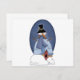 Camisetas azuis, capuzes, canecas, cartões, adesivos, sacos de tote, chaveiros, ímanes e mais com um boneco de neve vestido com um casaco azul e cachecol e vestindo um chapéu furado!