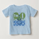 Um hipopótamo azul em um chapéu de festa, bolinhas, balões, e texto que diz "Eu tenho 1" nas primeiras camisetas de aniversário, carroças, cartões, adesivos, sacos de tote, ímãs e muito mais.