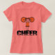 T-shirts, capuzes, tampas de tanques, canecas, cartões, autocolantes, ímanes de torcida, botões, selos de correio e outros roupa e presentes de torcida que apresentem um cheerleader num uniforme de ouro com pom de ouro.