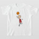 Design bonitinha com um jogador de basquete de menino de uniforme vermelho com basquete em T-shirts, canecas, cartas, capuzes, camisolas, camisolas, mousépias, ímãs e muito mais.