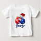 Um bebê de Natal vestido com um boné de estoque vermelho toca num casal de ornamentos de férias e o texto diz "Joy" em sacos de tote, T-shirts e outros artigos personalizáveis.