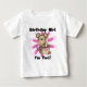 Meninas T-shirts segundos aniversários, fatos-chave, cartas, autocolantes, ímanes, bolsas e mais, com um macaco-macaco bonitinho e flores cor-de-rosa, com texto que diz "Rapariga de Aniversário, Eu sou Dois!".