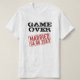 Jogo sobre camisetas engraçadas com carimbo de data de casamento. Ideia divertida de presente para casal e luas de mel. Personalize este presente para noiva e noivo. Tchau de estilo de vindima com marca vermelha de carimbo e data do casamento. Legal chá para o solteiro/marido.
