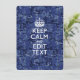 Seu ditado personalizado "Fique Calmo" em um marinho de decoração digital de camuflagem. Um estilo "Manter Calmo" personalizado dizendo em um presente gentil. Humorístico ou caprichoso experimente suas palavras criativas em duas linhas editáveis de texto. Lembre-se de usar letras CAPITAL para obter melhores resultados. Use o link "Perguntar a este Designer" para entrar em contato conosco com suas solicitações especiais de design ou para obter assistência com suas necessidades de personalização.