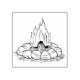 Este selo de borracha apresenta uma bela dentro de fogueira de acampamento um anel de rochas do rio. Imagem perfeita para cartas, livros de recortes, e mais para o entusiasta do exterior ou para qualquer pessoa que desfrute do calor confortável de uma fogueira à noite.