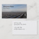 Este cartão de visita mostra um campo de fazenda preparado com mulch plástico. Nada foi plantado ainda. As camas estendem na distância onde as colinas são obscurecidas pela névoa da manhã. O céu azul fornece um contexto limpo para o nome da empresa e do empregado. Há um espaço na parte traseira para detalhes do contato.