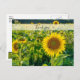 Cartão de agradecimento com uma grande girassol iluminado pela luz dourada do sol em um campo em Willard, Missouri, Estados Unidos durante o pôr do sol na hora dourada. Se você olhar de perto, pode ver uma abelha no girassol.