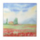 Campo de papoila na Toscana. A ilustração da aquarela foi desenhada e digitalizada. Paisagem de Aquarela feita ao ar livre 2024. A imagem será um bom presente e uma decoração interior maravilhosa.