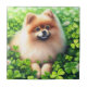 Azulejo cerâmico com um adorável cão Pomeraniano laranja, a colocar um campo de trevo com algumas camarões. Uma Rua fofa, presente de Patrick para donos da Pomerânia e amantes de pom.