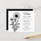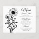 Aumente sua recepção de casamento com este charmoso cardápio de casamento preto e branco de girassol! Apresentando um design floral minimalista, este menu de na moda é perfeito para casamentos rústicos, country, jardins e boho. Quer você esteja comemorando em primavera, verão, ou outono, a beleza botânica dos girassóis e flores silvestres adiciona um toque eterno e romântico à sua mesa. Chic e Trendy, este menu de casamento combina simplicidade com elegância rústica, fazer uma maravilhosa adição ao seu dia especial.