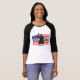 Camiseta feminina mangas raglan 3/4 da Bella+Canvas, Branco/Preto, Adulto G
