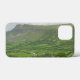 Caso de cobrir do iPhone na Irlanda com vista à paisagem irlandesa, campos e fazendas perto de Glencar Lough, no Condado de Leitrim.