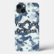 Um padrão de camuflagem de inverno, branco, azul e verde, ao estilo digital. Adicione seu próprio texto.