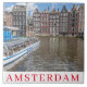 Uma bela vista de casas tradicionais por um canal em Amsterdã, na Holanda, impressa em um azulejo cerâmico de souvenir.