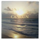 Azulejo cerâmico quadrado com a imagem de um glorioso nascer do sol sobre o oceano em Cancun, México. Texto opcional. Consulte pote de doces, caneca, placa de papel e portas copos correspondentes. Veja toda a coleção de Azulejos do México na seção HOME.