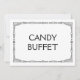 Simples e elegante sinal de casamento do estilo "Candy Buffet", preto e branco. Este cartaz de casamento "Candy Buffet" parece excelente impresso em um papel mate, se você precisar de algo mais tradicional, use o Laid, Linen ou Columned, para um toque rústico usar o Artisan Kraft, se você quiser adicionar um toque de vidro, use o Luxe. Clicando no botão "personalizar", você pode acessar a ferramenta do editor e escolher uma cor de fundo diferente. Este é um sinal de cartão impresso plano de 5" x 7", que ficará muito elegante em uma imagem.