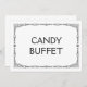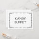 Simples e elegante sinal de casamento do estilo "Candy Buffet", preto e branco. Este cartaz de casamento "Candy Buffet" parece excelente impresso em um papel mate, se você precisar de algo mais tradicional, use o Laid, Linen ou Columned, para um toque rústico usar o Artisan Kraft, se você quiser adicionar um toque de vidro, use o Luxe. Clicando no botão "personalizar", você pode acessar a ferramenta do editor e escolher uma cor de fundo diferente. Este é um sinal de cartão impresso plano de 5" x 7", que ficará muito elegante em uma imagem.