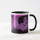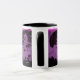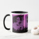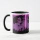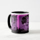 A caneca de café promocional faz uma declaração de excelente para você, seus funcionários, no seu salão, para seus clientes e amigos, para ajudar a promover seus negócios. Bonito o suficiente para possuir, com um gráfico de efeito arco-íris e todas as suas informações comerciais, como endereço web, endereço de e-mail, número de telefone, endereço de rua, nome do salão, seu nome e título, além de espaço para uma declaração pessoal. Projetado por HAMbyWhiteGlove também conhecido por HAMbWG. gráfico roxo, preto - com texto preto, mostrado na xícara branca com dentro preto, alça preta.