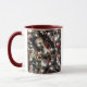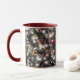 O brilho mágico de uma árvore de Natal, decorada com ornamentos antiquados (vários com tema de balé) decora esta bonito caneca sazonal.