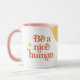 Esta caneca de cerâmica apresenta um tema retrô dos anos 70 com a citação "ser um bom humano". Todas as cores são editáveis, portanto, sinta-se à vontade para criar a sua aparência única!
