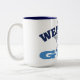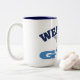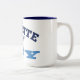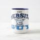 Mug, branco com interior azul e o logotipo de Cara do site na parte externa