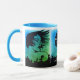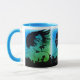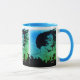 A caneca de café promocional faz uma declaração de excelente para você, seus funcionários, no seu salão, para seus clientes e amigos, para ajudar a promover seus negócios. Bonito o suficiente para possuir, com um gráfico de efeito arco-íris e todas as suas informações comerciais, como endereço web, endereço de e-mail, número de telefone, endereço de rua, nome do salão, seu nome e título, além de espaço para uma declaração pessoal. Projetado por HAMbyWhiteGlove conhecido como efeito azul e verde HAMbWG, gráfico preto - com texto preto, mostrado na xícara branca com dentro azul, alça azul.