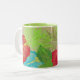 Caneca de café com designs de flores de jardim botânico.