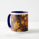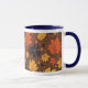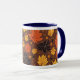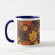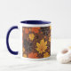 Esta caneca tem um padrão para criar uma atmosfera de outono.