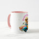 Prepare-se para uma aventura Páscoa, com este adorável e caprichoso design de caneca de Mens. Um pintinho amarelo liso vestindo óculos de sol redondos legal está dirigindo um carro colorido estilo vintage com painéis de azul, rosa e amarelo. Esta design encantadora traz um senso de diversão e brincadeira para as comemorações da Páscoa.