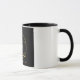 Uma caneca de café com um padrão preto e branco fofo com logo de raio de luz