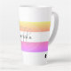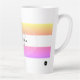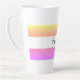 Caneca de café listrada amarela, rosa e branca com o seu nome em preto e inicial na cinza. Design HAMbyWhiteGlove aka HAMbWG