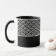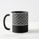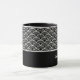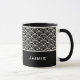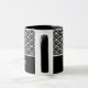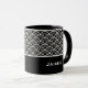 A caneca de café cerâmica é mostrada com um impressão de arte preto e branco. Personalize este item e altere o nome do exemplo para o seu.