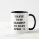 O humor da época fiscal é o melhor! Esta caneca de contabilidade minimalista diz "Eu tenho 1040 razões para odiar 15 de abril" em tipografia ousada. Um presente prático para contadores de impostos sobrevivendo à estação movimentada.