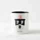 Esta 11 onças, dois-tom (exterior preto interior/branco), caneca da bebida caracterizam a crista da família de Tenney.