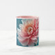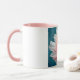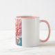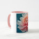 This 11 oz Combo Mug has color on the inside and on the handle. The rest of the mug is white, with an image of a pink flower on the front.