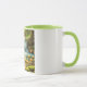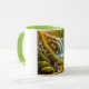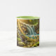 This ceramic 11 oz Combo Mug is painted on the inside and on the handle. The rest of the mug is white, with a colorful image of wildflowers and a waterfall on the front.