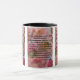 Esta caneca de dois tons apresenta uma impressão sergio trendy com letras negras mostra o verso da bíblia "1 John 2:4-6" do KJV sobre uma imagem mostrando uma vista aproximada de rosas escuros e leves, com pétalas verdes, no tema do estilo floral. Este verso está referindo o capítulo do Livro de 1 John segundo mostrando o verso 4 a 6 neste tema de citação da bíblia do Rei James bíblia. A jante e o manípulo são vidrados em cores compatíveis, disponíveis em micro-ondas e máquinas de lavar louça de tamanho 11 onças ou 15 onças, construindo cerâmica segura.