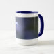 Fotografia macro na caneca azul da campainha 15oz.