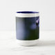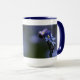 A fotografia macro do miosótis floresce na caneca azul da campainha 15oz.