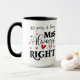 Esta caneca engraçada e fofa é um presente de excelente para a esposa comemorando seu 40º aniversário. Lê-se "40 anos de ser a Sra. Sempre-Direita" numa combinação de fontes de serifa negra e de script, acentuadas por corações vermelhos caprichos. O número de anos pode ser personalizado se você estiver dando esta caneca para um ano diferente de aniversário. Veja a minha loja para a caneca do "Sr. Certo" para o hubby!