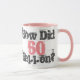 presente de aniversário de 60 anos. Sessenta anos. Como aconteceu o 60? é uma mensagem gráfica ousada nesta caneca rosa e branca.